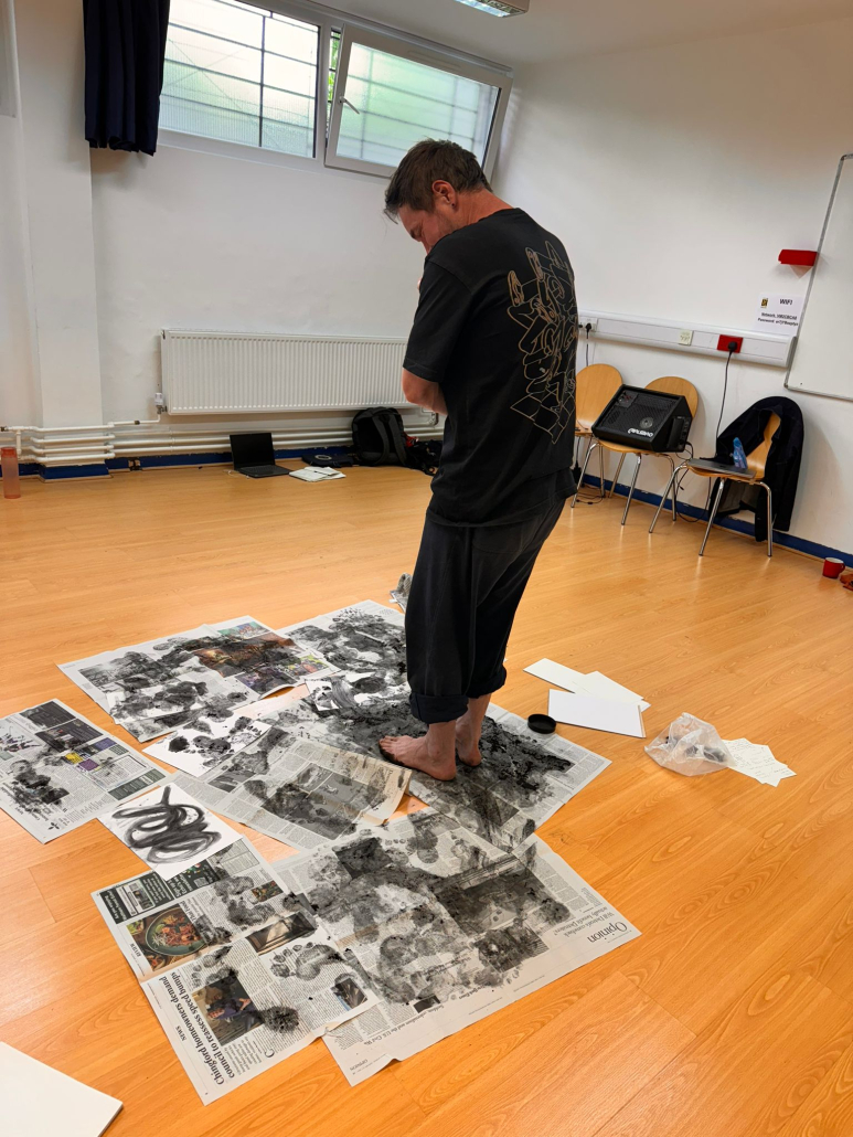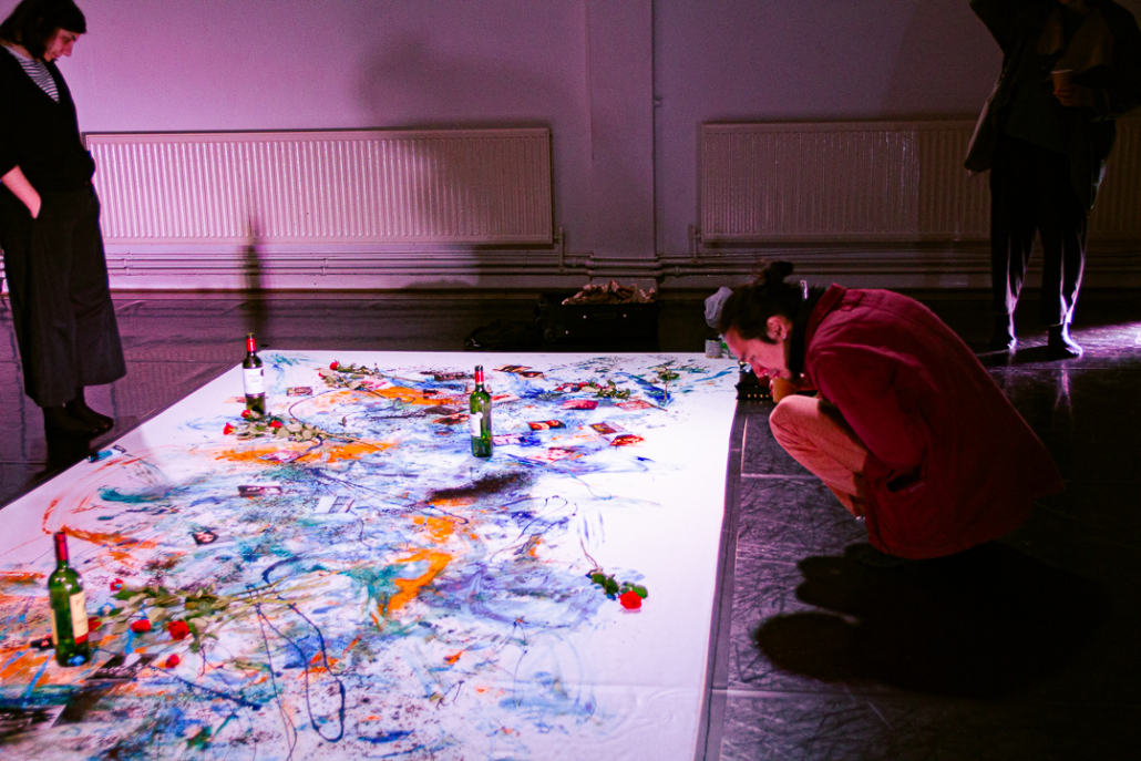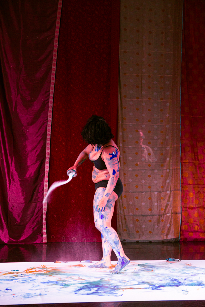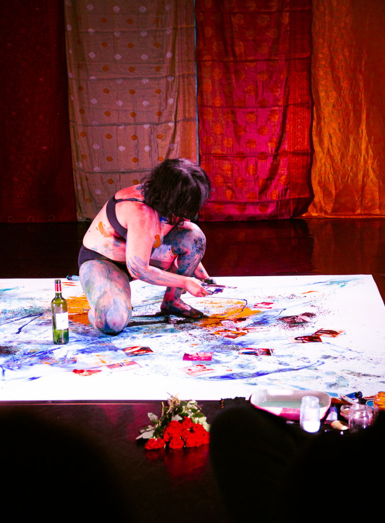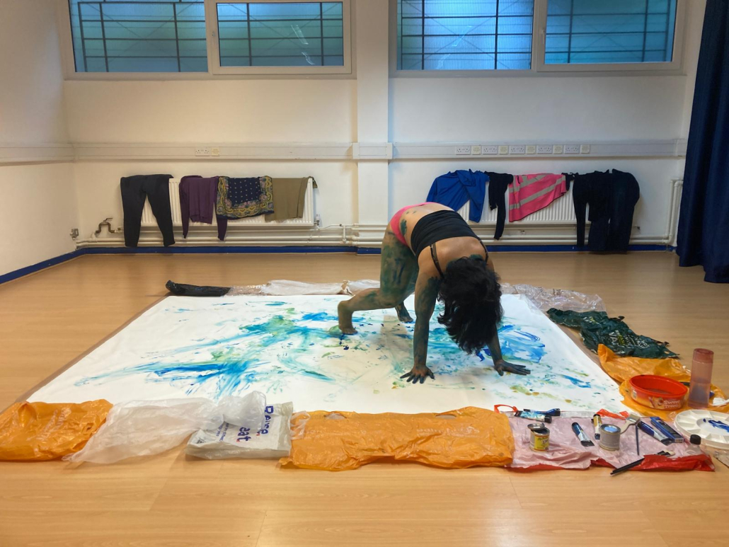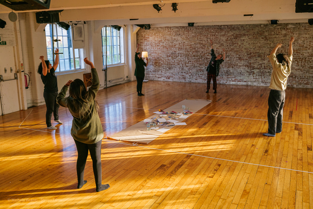The research is part of a multidisciplinary project fusing the body/text/sound and visual imagery. The performance explores the theme of solidarity and migrant joy.